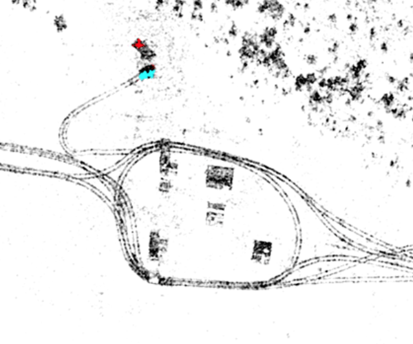 Motion tracking indicates that a vessel has reached the shore. Using MMTI and ISAR for maritime and GMTI/DMTI and CCD for land, mission specialists can continue employing the radar in both littoral and inland environments to identify the source of illegal operations. Analysts combine multiple high resolution SAR passes to generate change detection (GMTI and CCD) products that highlight boat launch points along coast lines or river banks. They can also monitor unimproved air fields, roads, and other facilities to establish patterns of life and attack the network supporting illegal operations. Relevant targets are then monitored and information is relayed to authorities.